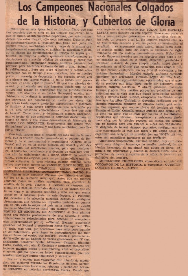 Crónicas periodísticas del campeonato obtenido, en formato de lectura para descargar.-