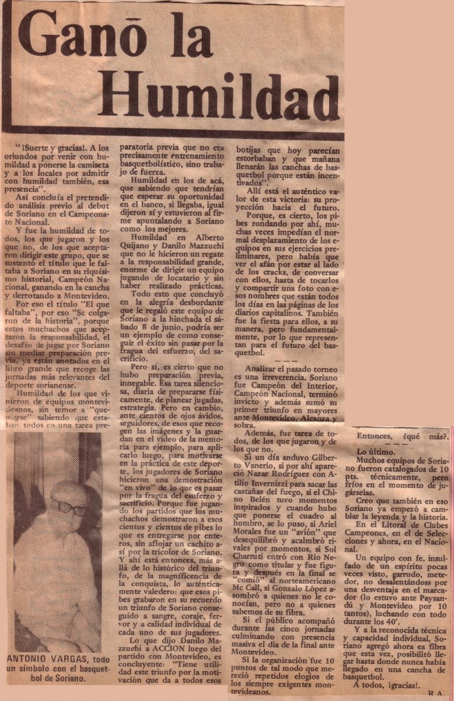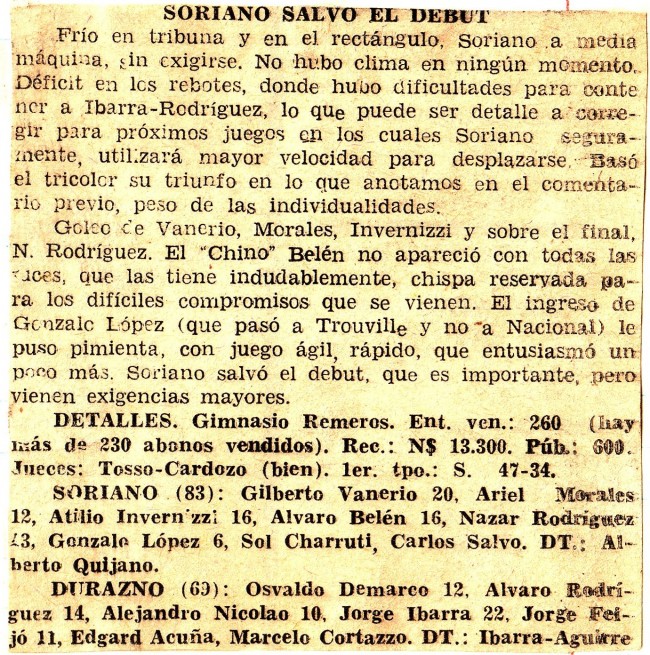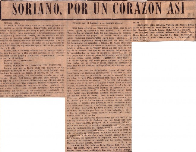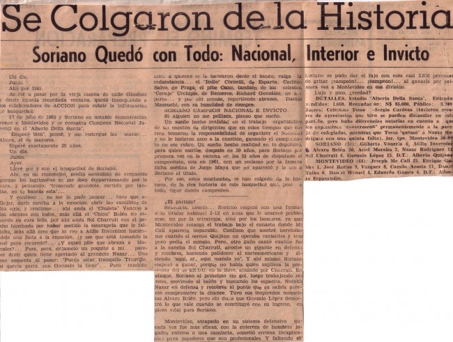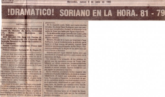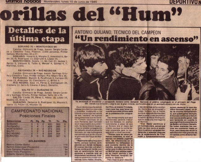Algunos documentos gráficos y dos artículos periodísticos para recordar el inmenso logro obtenidos por nuestra selección de mayores en el campeonato 1985.- Notas de los periodistas del Diario Acción, Zoilo Viera Castro (ZOVIC) y Rúben Aunchayna Techera (RAT).-